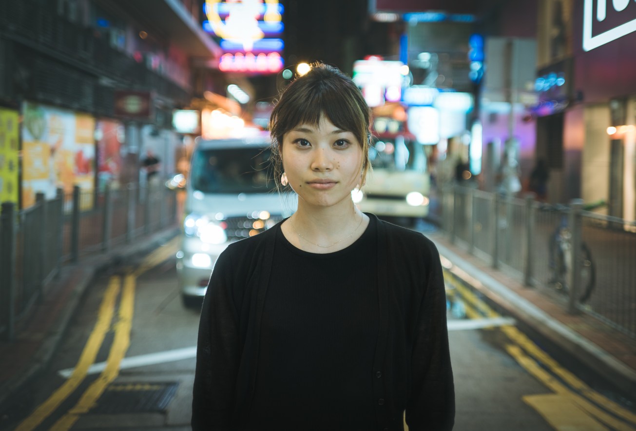 A portrait of Ritsuko in the streets of Hongkong. August 2015.