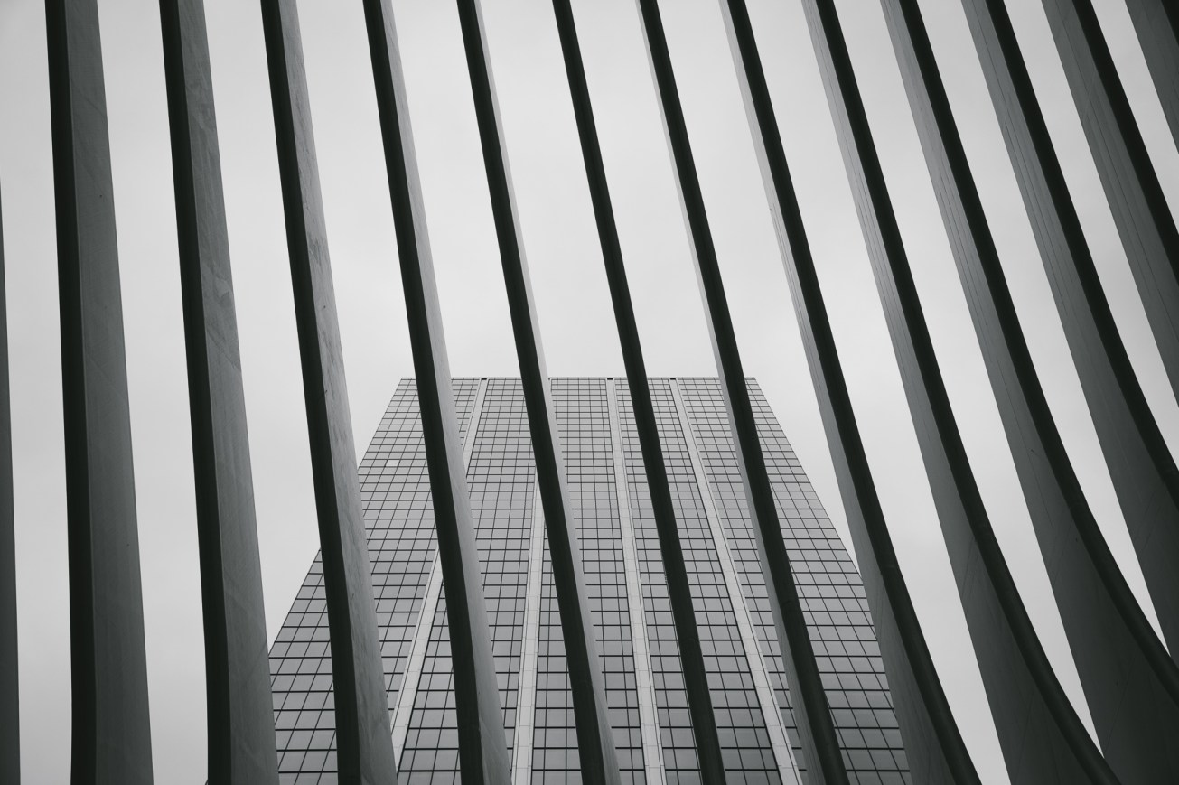 The WTC3 (left) and WTC1 (right) buildings, as seen through the “Oculus” structure in the foreground, of the World Trade Center transportation hub.