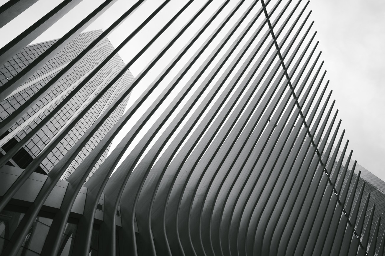The WTC3 (left) and WTC1 (right) buildings, as seen through the “Oculus” structure in the foreground, of the World Trade Center transportation hub.