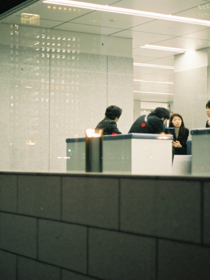 A girl / woman listening to some music on her way to the subway. Tokyo, Japan, September 2015.