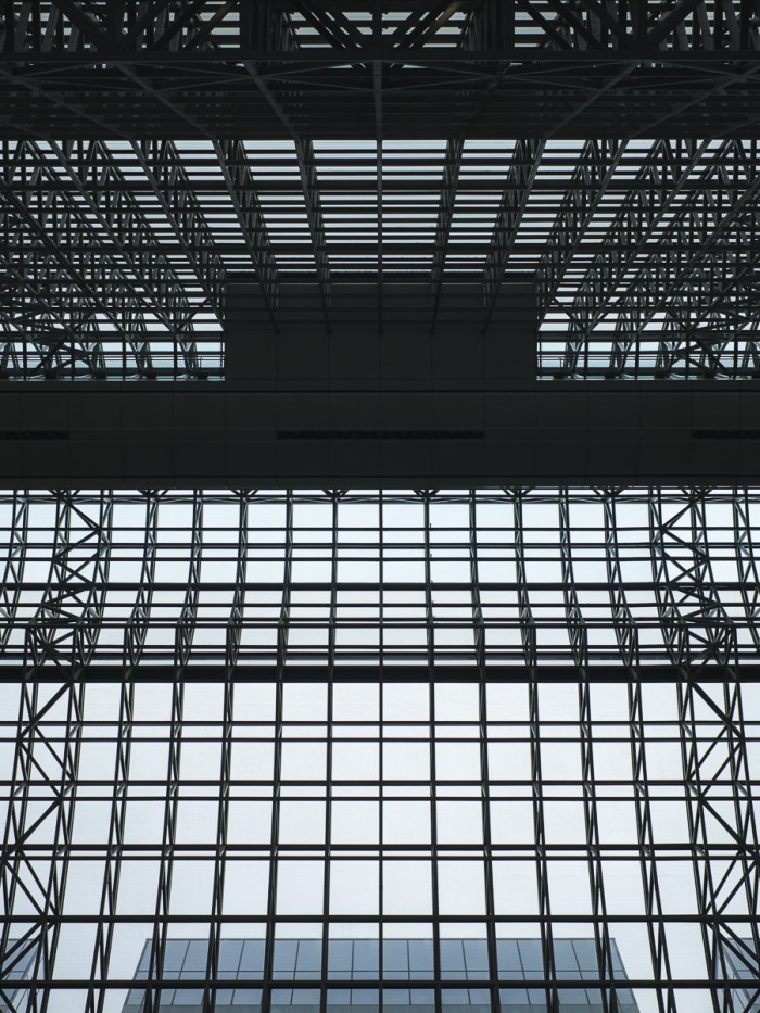 A look up to the dramatic rooftop of the Kyoto main station. August 2015.